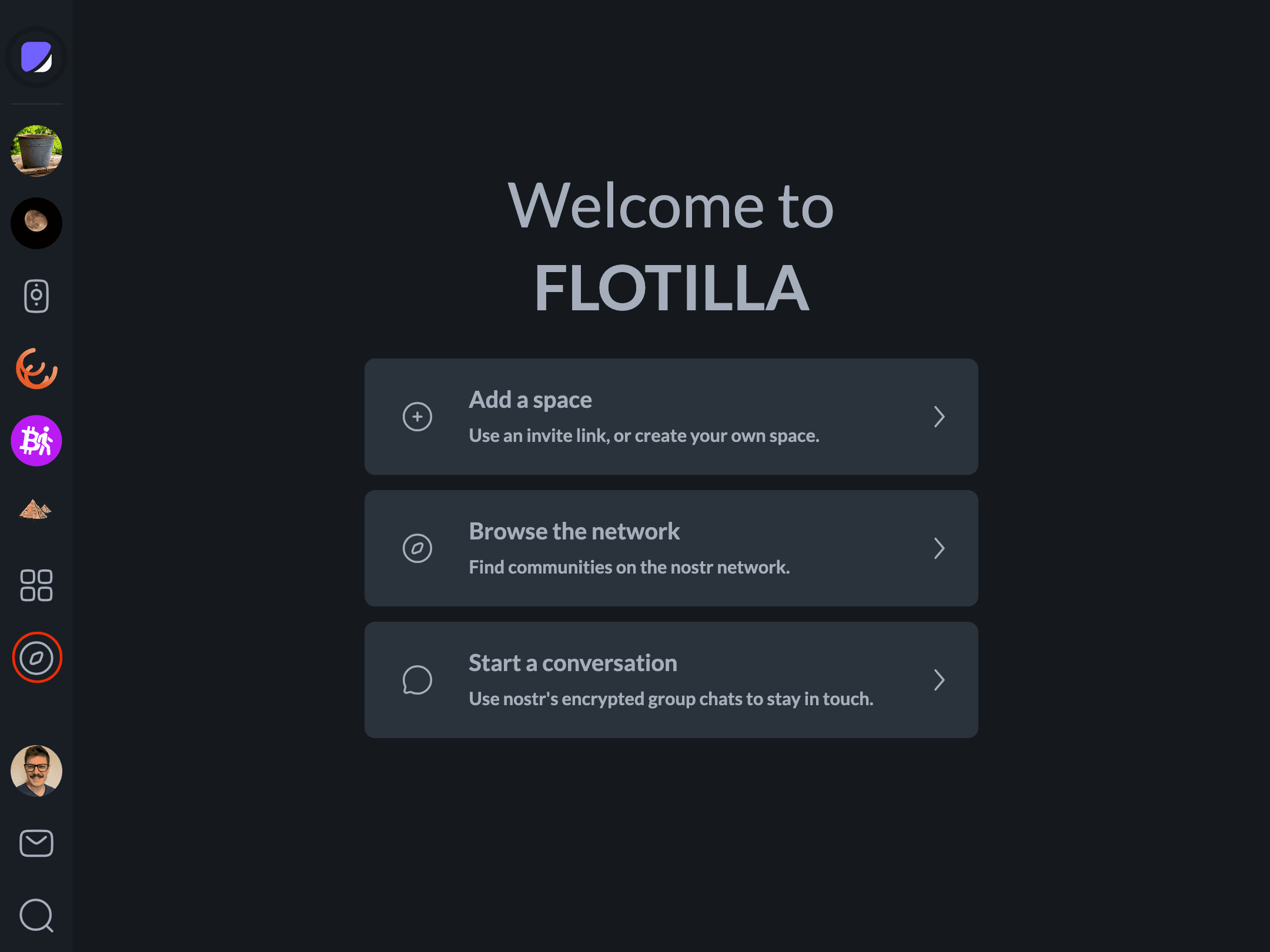To test your connection, open Flotilla and click the compass icon in the sidebar: