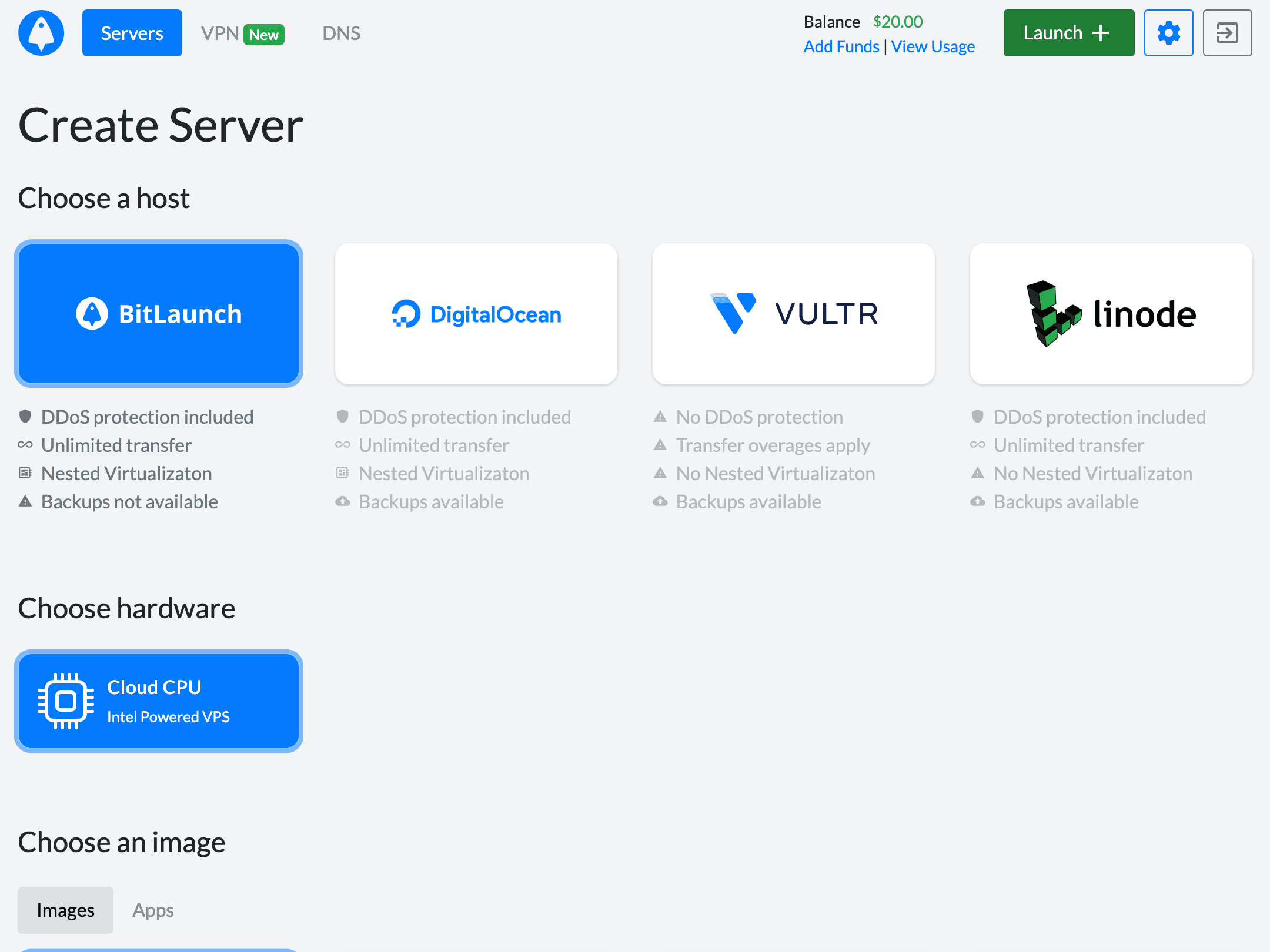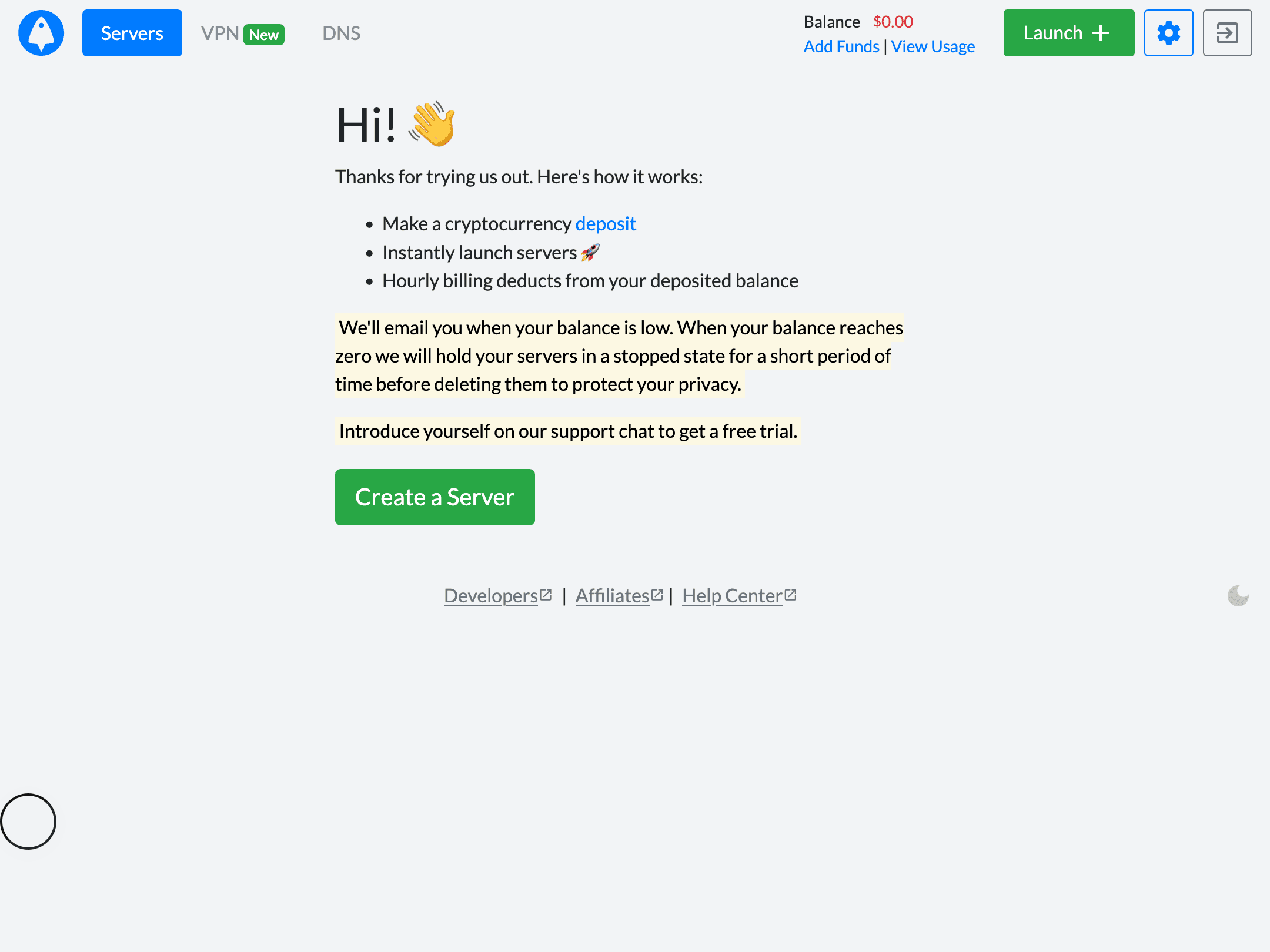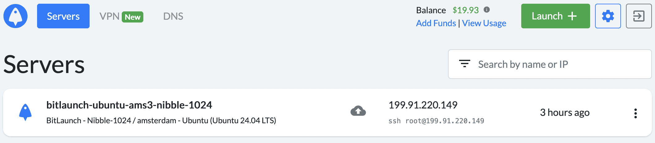 In this tutorial, we'll be using BitLaunch which provides domains and servers KYC-free and payable in bitcoin — but you can use any server provider you're comfortable with.